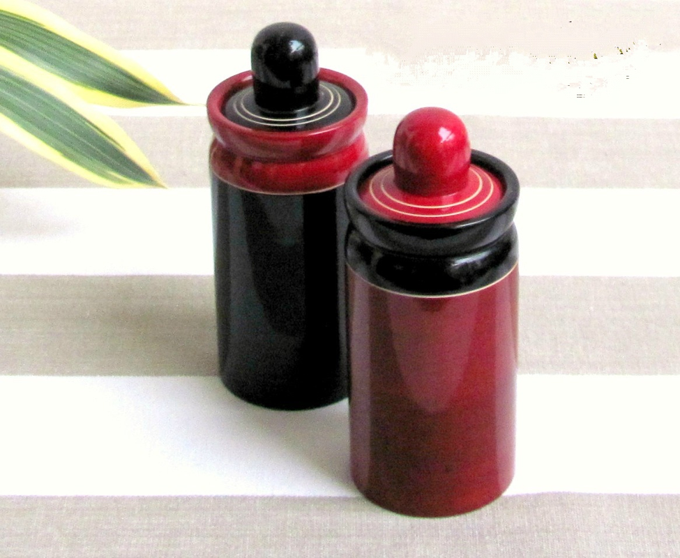 The Mini Bharani Toothpick Holders/Mukhwas Jars has been finely handcrafted by the artisans of Channapatna, from ivory wood and expertly coated with lacquer tinted with natural vegetable dyes. The hues radiate the essence of Indian cultural heritage and add to festive vibes.